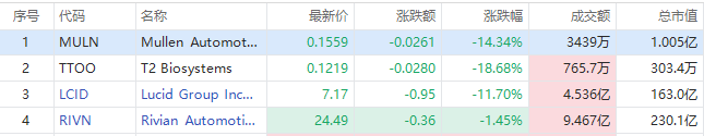 Lucid $LCID 早盘跌逾11%报7.17美元,公司第二季度生产了2,173辆电动汽车,同期交付了1,404辆汽车。Rivian $RIVN 早盘跌1.45%,此前实现九连涨。