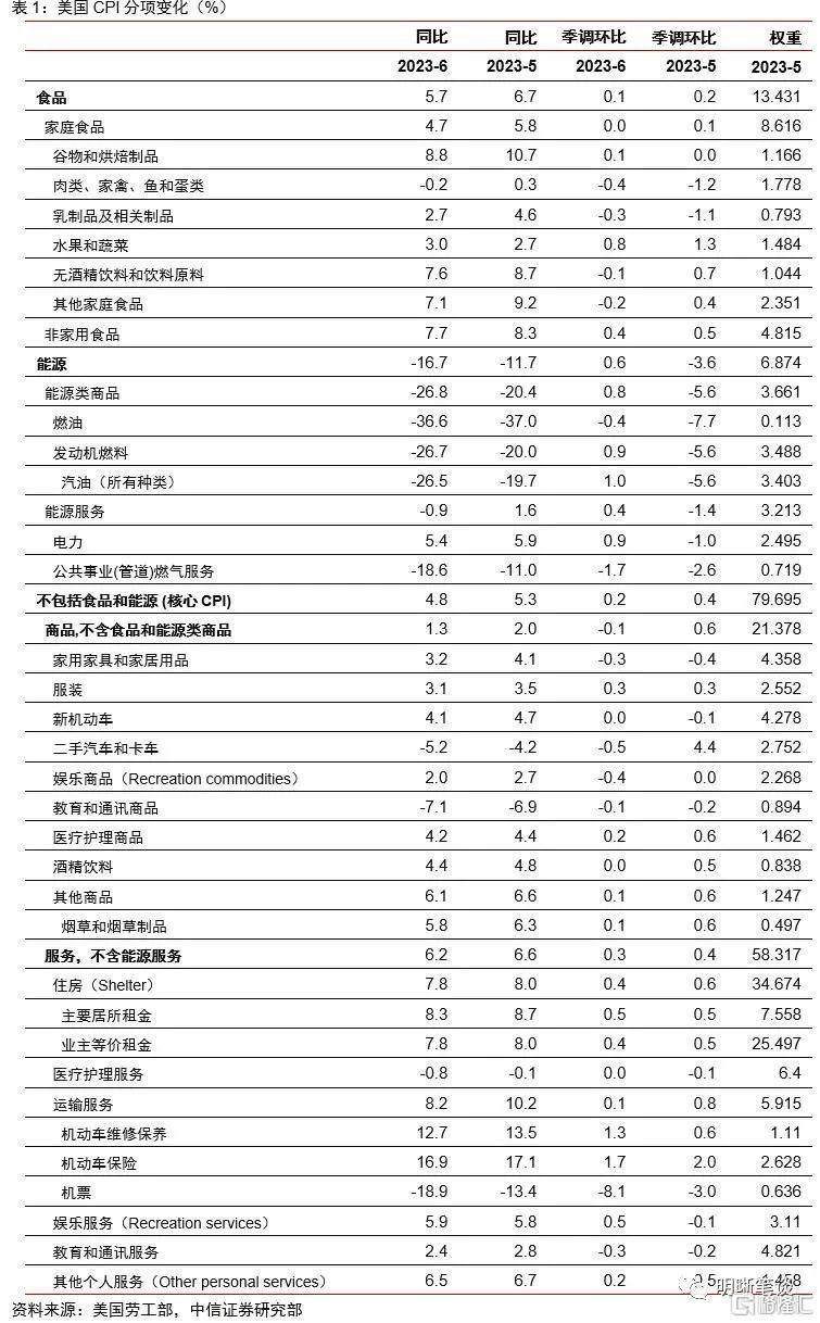 注:本文来自中信证券研究部已于2023年7月13日发布的《债市启明系列20230713—低于预期的通胀,美联储加息尾声临近了吗?》,报告分析师:中信证券首席经济学家 明明 执业证书编号: S1010517100001