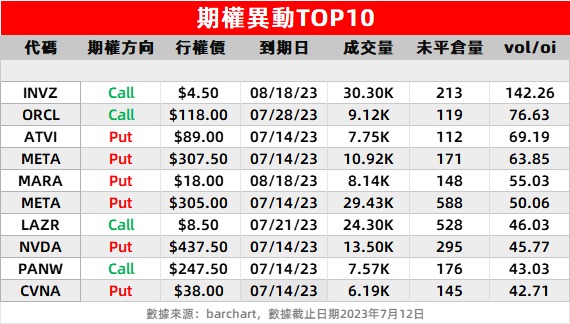 1、汽车级激光雷达传感器和感知软件的供应商Innovi $INVZ ,行权价为4.5美元,到期日8月18日的看跌期权,获市场资金涌入,隔夜成交超3万张。据悉,Innoviz计划于美东时间8月2日盘前披露最新一期业绩。