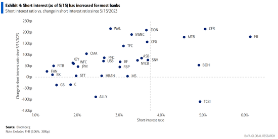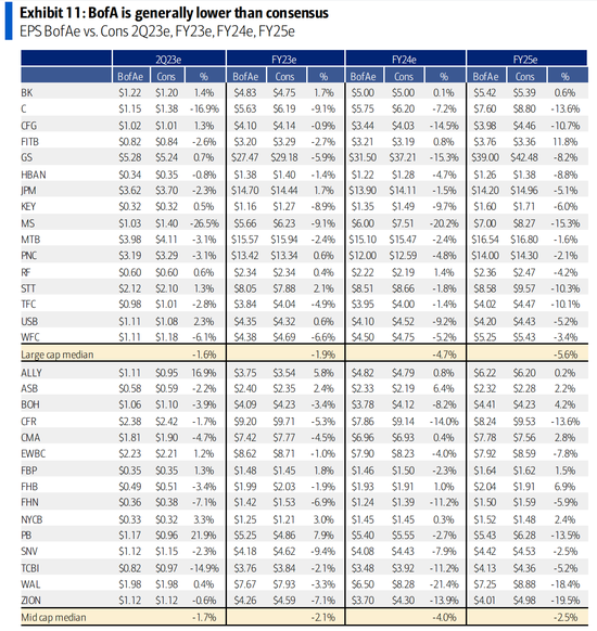 美国银行发布对银行业的二季度业绩前瞻,该行认为,银行股EPS预期下调,目前估值已充分折现,空头仓位较高,或推动股价反弹?
