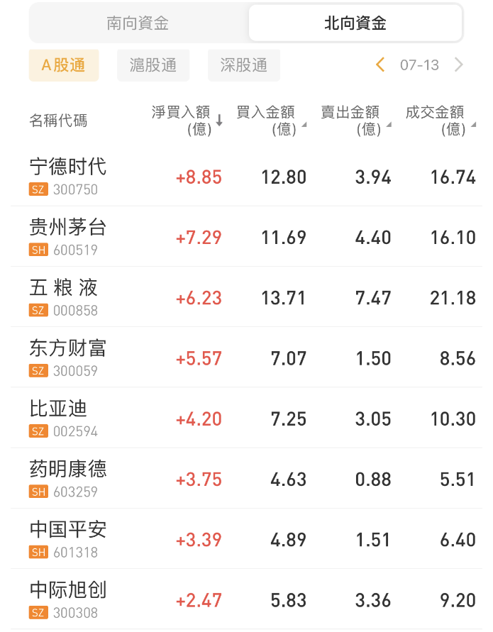 北向资金今日大举净买入135.85亿元,宁德时代、贵州茅台、五粮液分别获净买入8.85亿、7.29亿、6.23亿元;隆基绿能遭净卖出3.61亿元。