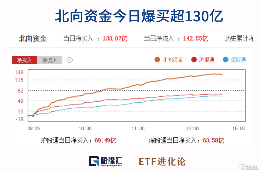 跟6月15日如出一辙的是,美联储6月议息会议暂停加息,北向资金当日大举扫货,单日买入92亿,今日更是直接爆买133亿,用真金白银表明对后市的看好。