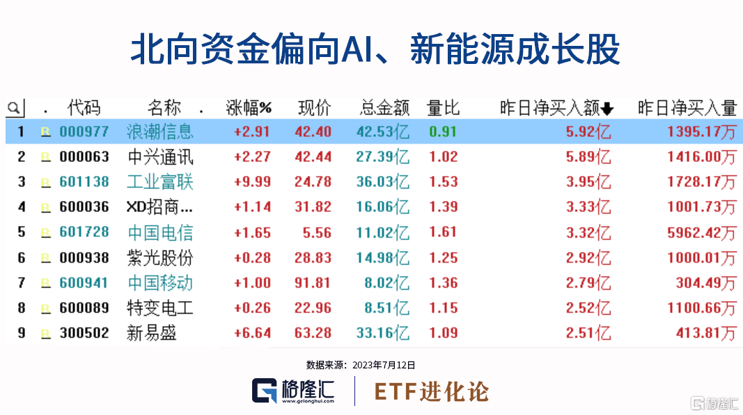 不一样的是,北向资金最近抛弃了往日青睐的消费白马股,反而对新能源、AI股颇为青睐。
