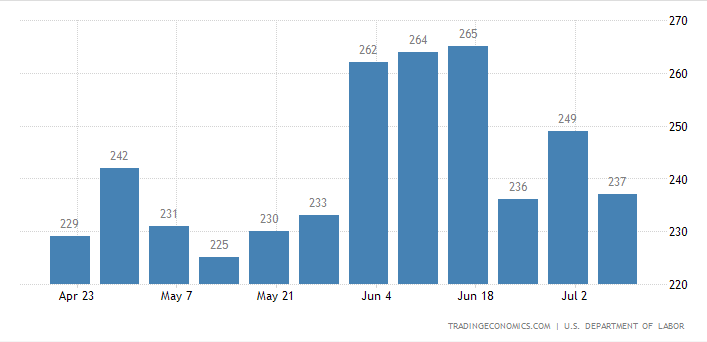 这些数据包括了上周二的独立日假期,这可能会造成一些扭曲。汽车制造商通常也会在7月份让工厂停工,以重新装配新车型。但这些工厂的临时关闭并不总是在同一时间发生,这可能会使政府用来从数据中剔除季节性波动的模型失效。相对于劳动力市场的规模,初请失业金人数远低于经济学家所说的28万人的水平,这一水平意味着就业增长明显放缓。