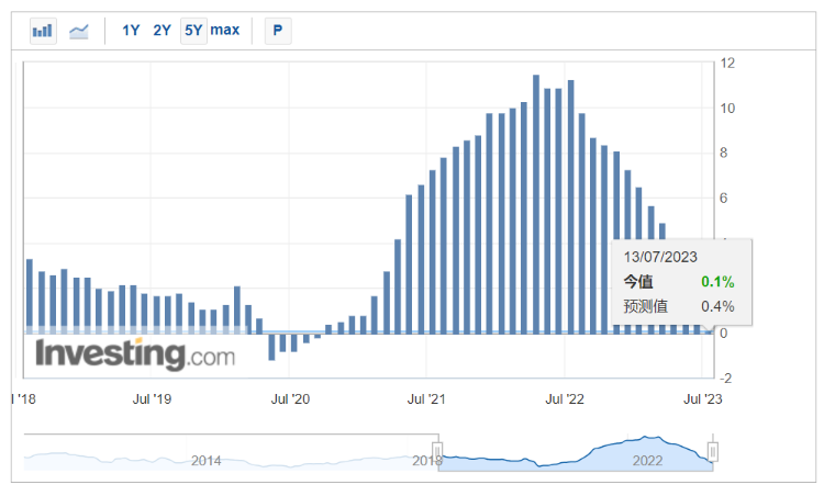 7月13日周四,美国劳工部发布的数据显示,美国6月PPI同比增速为0.1%,低于预期的0.4%和前值1.1%;环比上升0.1%,低于预期的0.2%,前值由-0.3%修正为-0.4%。