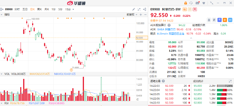 内地出台生成式AI监管办法,鼓励智能算法、框架、芯片及配套软件平台等基础技术的自主创新。早前中央表示支持平台经济,加上有憧憬行业自主创新,阿里巴巴-SW具备AI及电商平台等多个领域于一身,股价为此浪升势的领头羊之一,升破多条平均线包括250天即牛熊分界线后升幅进一步扩大,并已升至今年4月以来新高。