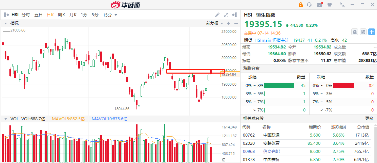 恒指今早高开近180点,上补6月21日下跌裂口,其后升幅曾收窄至44点左右。投资者如昨日开好仓,会留意到牛证收回价与昨日水平有一段距离,今天情况稍有好转,全市场其中一只最贴收回价的牛证可留意今天新上市的 $69043.HK ,收回价18,761点,2024年11月到期,实际杠杆22.1倍;相反如认为恒指遇压可留意恒指熊证 $67549.HK ,收回价19,950点,2026年3月到期,实际杠杆38.1倍。