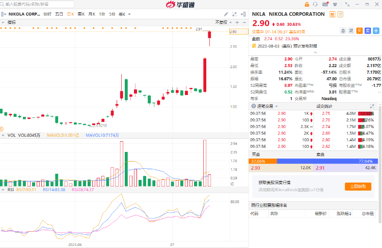 电动车企Nikola $NKLA 涨30.63%报2.9美元,续刷股价新高;消息面上,公司获BayoTech至多50辆燃料电池电动汽车订单,隔夜收涨超60%。