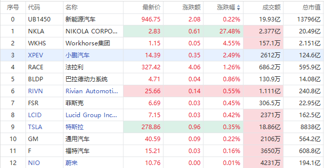 美股新能源车股多数走强,截至发稿,Mullen Automotive $MULN 升逾8%报0.1697美元;小鹏汽车涨2.49%,Rivian $RIVN 、Lucid $LCID 跟涨,特斯拉升0.35%,福特汽车、蔚来跟涨,理想汽车、法拉第未来走跌。
