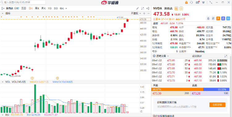 华盛资讯7月14日消息,美股三大股指高开。截至发稿,道指涨0.54%,标普500指数涨0.33%,纳指涨0.46%。