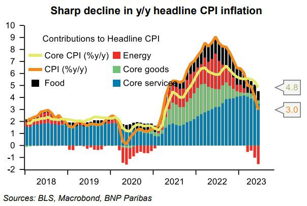 周三公布的数据显示,6月美国CPI同比上涨3.0%,低于5月份的4.0%。从去年夏天9.1%的41年高点到现在,通胀同比增速已经连续12个月放缓,这是自1920年6月至1921年6月以来持续时间最长的下降。经济学家Phil Suttle周三写道: