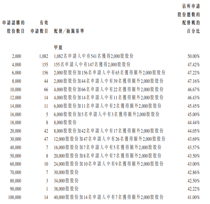 国 际 发 售 项 下 初 步 提 呈 发 售 的 发 售 股 份 已 获 轻 微 超 额 认 购,相当于国际发售项下初步可供认购的114,000,000股发售股份总数约1.63倍(包 括 优 先 发 售 项 下659,764股 预 留 股 份)(于 任 何 超 额 配 股 权获 行 使 前)。