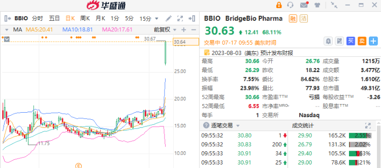 BridgeBio Pharma $BBIO 涨超68%,现报30.63美元。心脏病药物的3期研究显示主要终点 “具有高度统计学意义的改善”。
