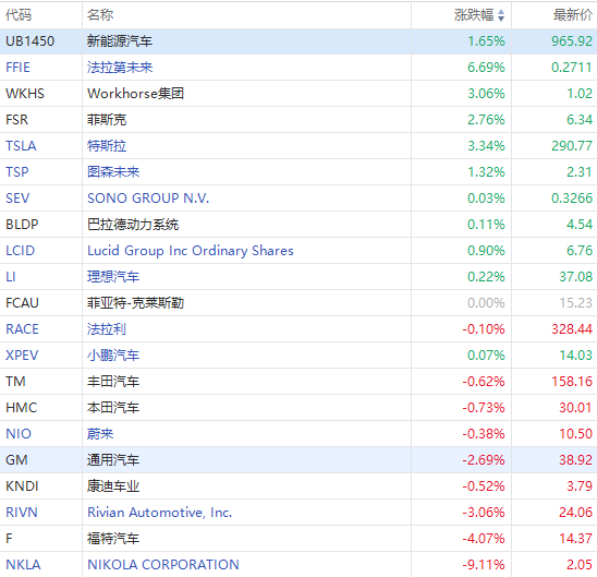 美股新能源车股涨跌不一,截至发稿,法拉第未来涨超6%,已连续7个交易日上涨;特斯拉涨超3%,福特汽车跌超4%,Rivian $RIVN 跌超3%,通用汽车跌超2%。据悉,特斯拉公司首辆电动皮卡Cybertruck在得克萨斯州工厂生产完毕,在原型车推出近四年后这款电动皮卡终于下线。此外,特斯拉将于美东时间7月19日盘后发布财报。