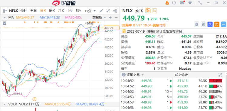 奈飞涨近2%,现报449.79美元。据泰晤士报,在取消密码共享后,奈飞订阅用户数量达到纪录新高。彭博分析师预期Q2营收约为82.65亿美元;经调整后净利润为13.1亿美元;花旗称奈飞的广告业务存在潜在的积极因素,上调其目标价至500美元。此外,奈飞将于美东时间7月19日盘后发布财报。