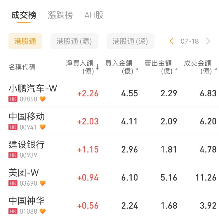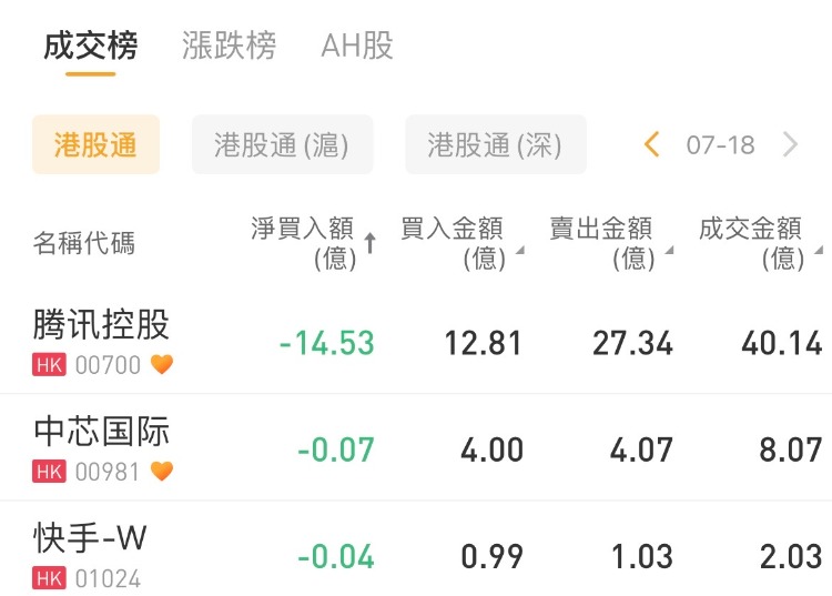 腾讯控股、中芯国际、快手-W分别遭净卖出14.53亿港元、0.07亿港元、0.04亿港元;小鹏汽车-W逆势获净买入2.26亿港元,中国移动也获净买入2.03亿港元,增持建设银行1.15亿港元。