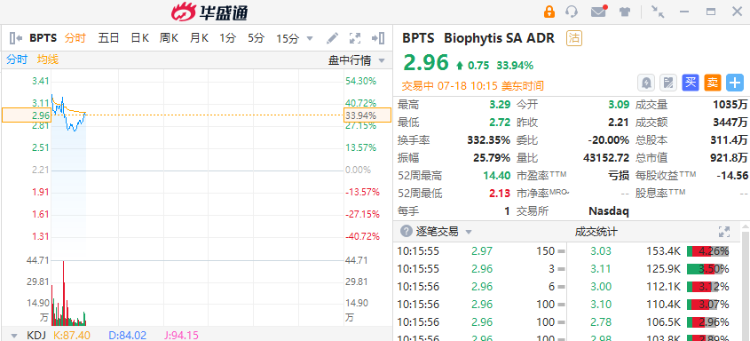 Biophytis $BPTS 和SEQENS合作生产Sarconeos (BIO101) 活性化合物,盘中大涨近35%。