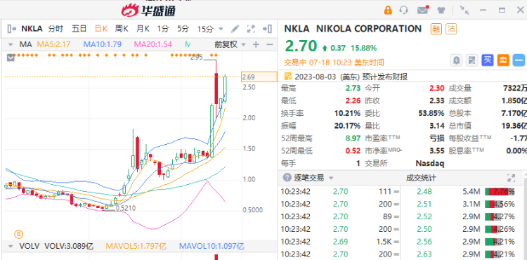 电动车企Nikola $NKLA 涨超15%报2.7美元,隔夜期权成交超29万张,隐含波动率升至241%。关联阅读:期权扫描丨 动视暴雪空头出手2.5万张末日PUT单!两大通信巨头获大单看多