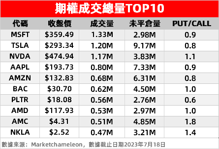 1、微软:隔夜宣布Office 365 AI助手定价30美元/月,比普通版的22美元/月高出约36%,刺激公司股价周二升近4%再创历史新高,期权成交量激增至133万张。看涨期权未平仓合约增加 1.9%,达到 150 万份合约。