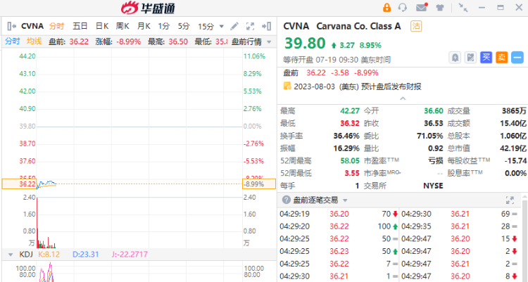 美国最大在线二手车平台Carvana盘前大跌近9%,Carvana $CVNA 表示,将于周三盘前公布二季度财报,较原定发布时间提前了整整两周。该公司股价今年以来已大涨超过700%。美国二手车价格7月上半月环比下降1%,促使二手车经销商的股价走高。