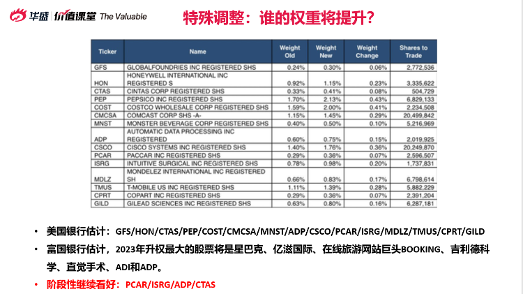 那哪些个股将有机会上调权重呢?美国银行和富国银行给出了它们的预测:
