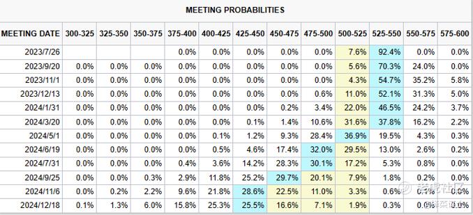 而随着美国经济进入这种状态,7月后不加息概率加大,而降息预期则提前到明年三月份。