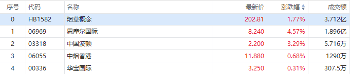 7月20日午后,烟草板块走强,截至发稿,思摩尔国际涨超4%,中国波顿涨超3%,中烟香港、华宝国际跟涨。