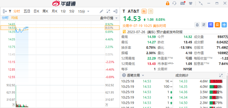 AT&T $T 涨超8%,报14.53美元。文件显示,AT&T已停止在太浩湖地区拆除铅包电缆的计划,并将在其部署有铅包电缆的地方测试铅含量。