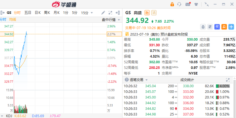 高盛 $GS 涨超2%,报344.92美元。高盛Q2营收109亿美元,超预期的104.6亿美元;每股盈余3.08美元,远低于预期的3.94美元;资管规模2.71万亿美元,低于预期的2.73万亿美元。