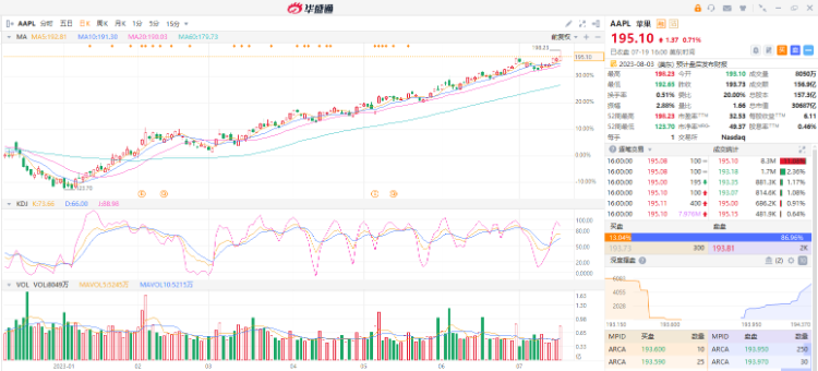 受消息影响,隔夜苹果盘中一度直线跳涨超2%,市值短线数秒激增近600亿美元,收涨0.71%报195.1美元,最新总市值3.07万亿美元,市值创新高。