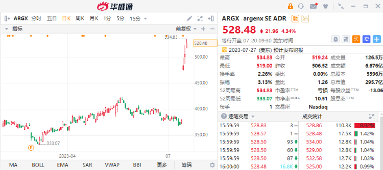 1、argenx SE宣布罕见病药物研究获得积极数据,近三日累涨超39%;