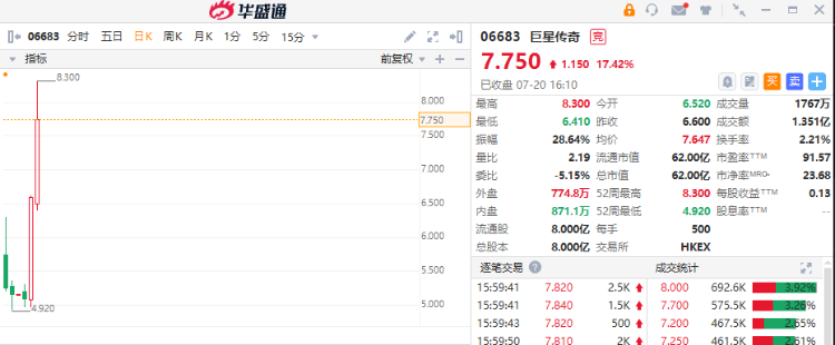 - 国农证券指出,看好巨星“明星IP +直播变现”的商业模式,未来巨星将着重发展超级明星IP孵化及线上直播带货,前景乐观。