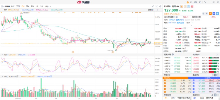 同期的美团股价从年初的174.7港元降至6月底的122.3港元,期间跌幅达到29.99%。