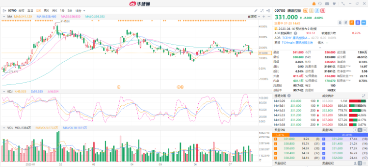 而同期的腾讯控股股价一度上涨至413港元,随后股价开启震荡回落走势,直到6月底,该公司报收331.6港元。