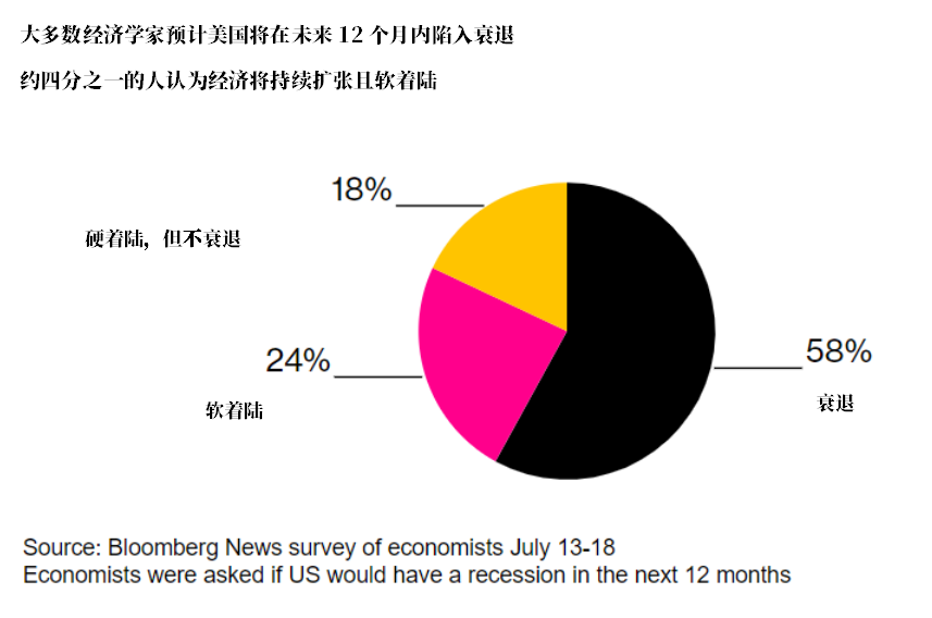 尽管鲍威尔表示,他认为存在狭窄的软着陆道路,但根据FOMC上个月的会议纪要,美联储工作人员预测美国将陷入衰退。在接受调查的经济学家中,大多数预计美国经济不会出现正式衰退的人都预计经济继续扩张,即他们认为GDP增长率不会降至零或转为负值。