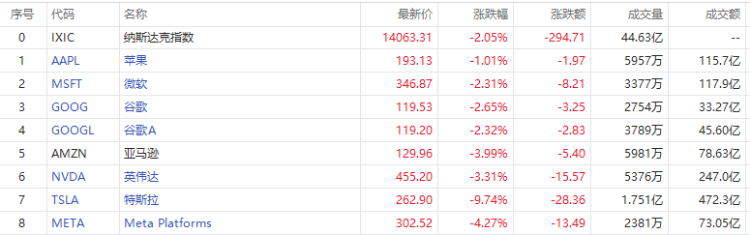 全线大跌!纳指一夜大跌近300点!八大科技巨头市值蒸发超3680亿美元