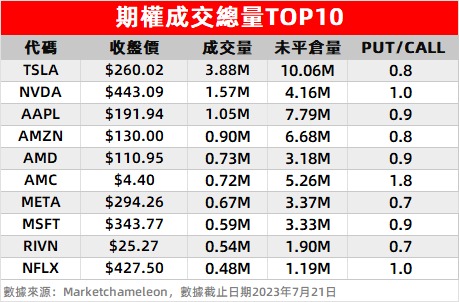 1、绩后两日特斯拉已跌超10%。期权方面,周五期权成交额达16.6亿美元,其中看涨期权成交额达到9.24亿美元。另外,看涨/看跌期权持有量比率在1.25倍。