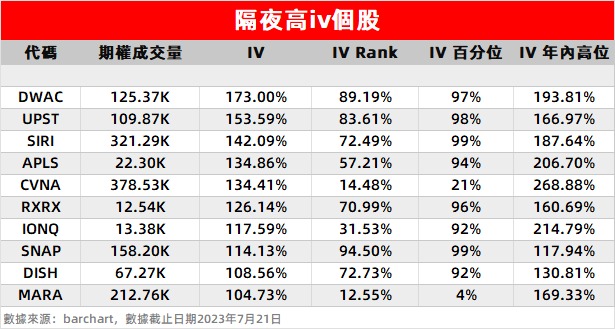 2、人工智能借贷平台Upstart $UPST 从5月起最高曾涨3倍!近期隐含波动率虽有回调,但也维持在年内高位附近。