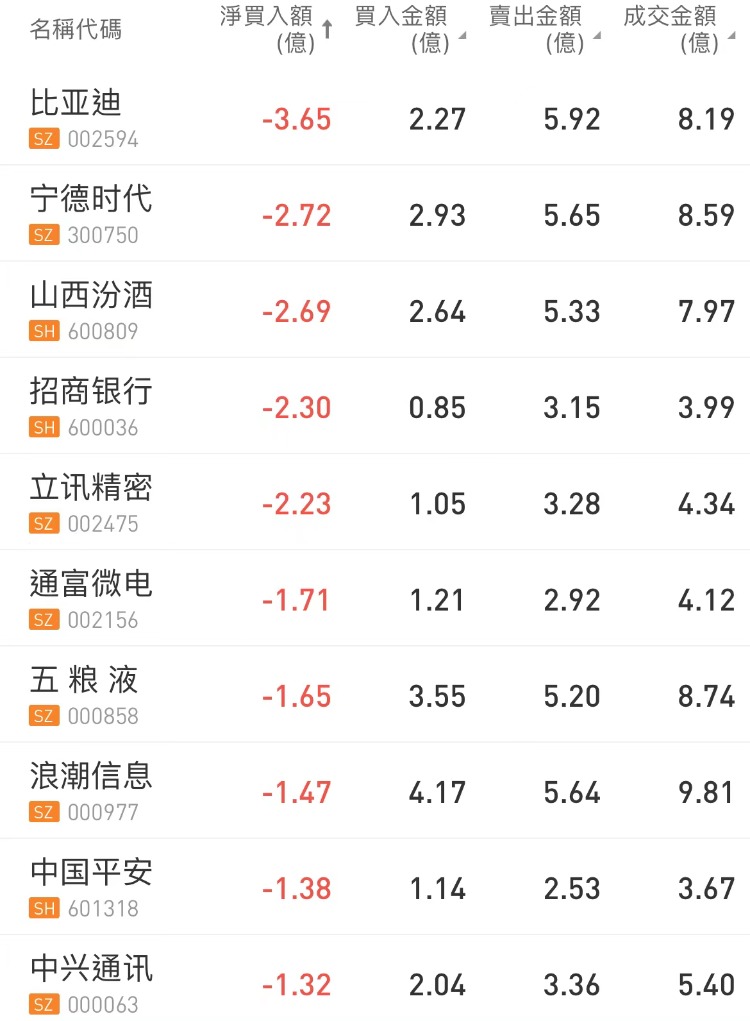 北向资金今日净卖出51.43亿元。比亚迪、宁德时代、山西汾酒分别遭净卖出3.65亿元、2.72亿元、2.69亿元;科大讯飞逆势获净买入3.27亿元。