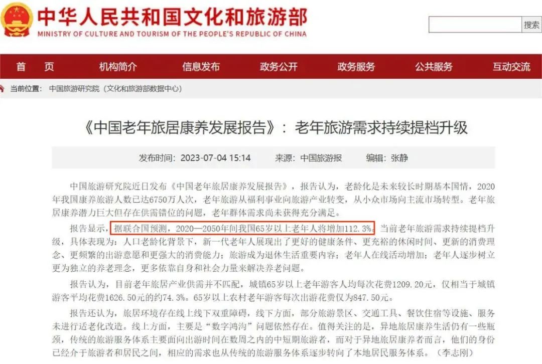 这种情况下,主打老年人文旅业显然是明智的选择。