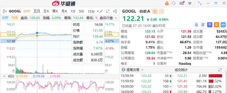 谷歌本季度的亮眼财报表现也直接体现在了股价上。今日美股盘后,谷歌股价一度大涨超过7%。