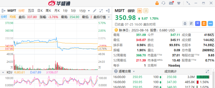 受到微软云业务增速放缓和低业绩预期的影响,微软股价在盘后一度跌超3%。