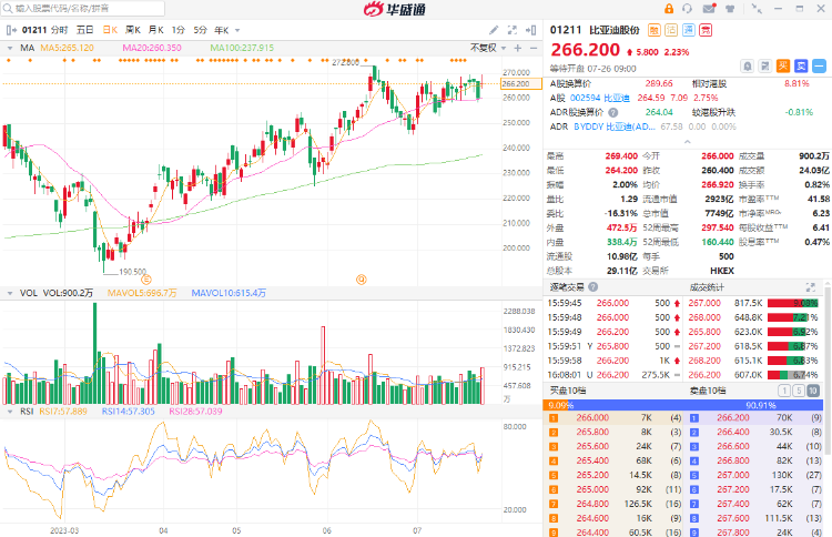 比亚迪股份主要业务是在国内从事以新能源汽车为主,研究、开发、制造和销售汽车和相关产品。亦从事二次充电电池和光伏业务。同时利用自身技术的优势,积极拓展城市轨道交通业务。另有部份手机部件及组装业务。集团同步在深圳证券交易所上市。