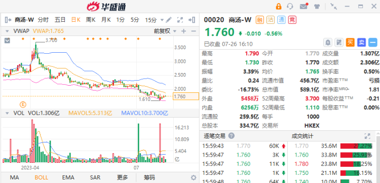 发布阿里减持公告当天,商汤报收1.72港元/股,今年以来股价跌幅为22.52%,最新总市值仅为576亿港元。