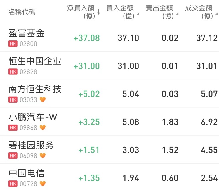 南向资金增持盈富基金、沽出腾讯控股
