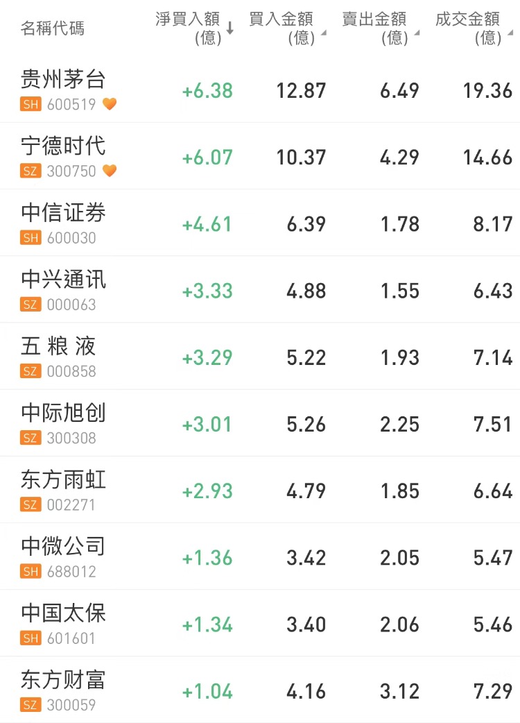 北向资金今日净买入5.15亿元。贵州茅台、宁德时代、中信证券分别获净买入6.38亿元、6.07亿元、4.61亿元。立讯精密净卖出额居首,金额为2.82亿元。