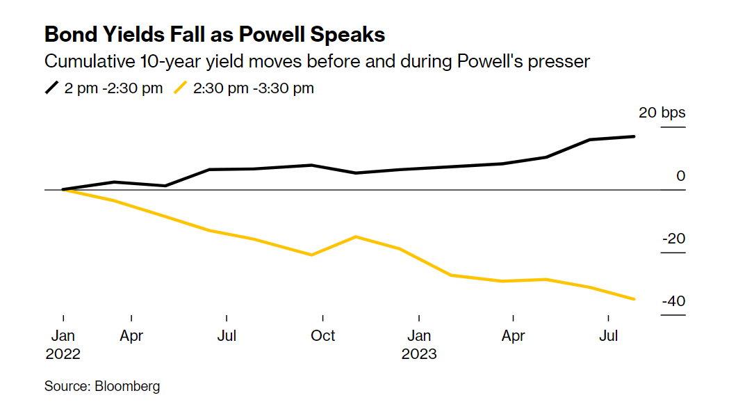 对投资者来说,2022年是残酷的一年,但在这一年的大部分时间里,至少有一种肯定会赚钱的投资。他们所要做的就是在美联储主席鲍威尔在利率决议后的新闻发布会上发表讲话之前几秒钟买入股票和债券,并在他结束讲话时抛售即可。