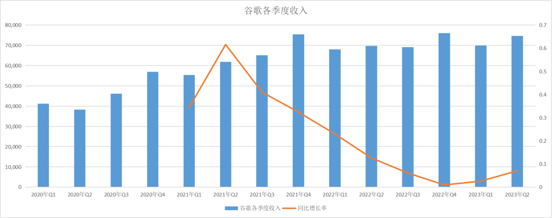 根据 Q2 财报数据,谷歌二季度收入 746.04 亿美金,同比增长 7%(上季度数据为增长 3%);营业利润 218.38 亿美金,营业利润率 29%(上季度数据 25%),同比增长近 12.3%,净利润 184 亿美金(上季度 151 亿美金)。稀释后每股收益为 1.44 美元,同比增长 19%。