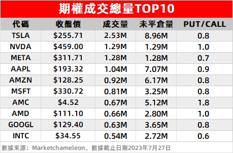 2、Meta Q2季营收320亿美元,同比增长11%;每股收益为2.98美元,创2021年四季度以来新高,双双超过了市场预期。隔夜期权成交量增加88%,但在隔夜看涨、看跌期权双双不赚钱,二者同时出现亏损的情况。