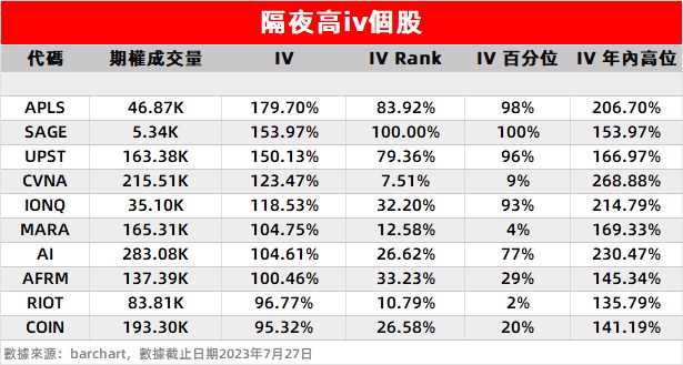 1、专注于脑健康药物的临床阶段生物制药公司Sage Therapeutics多日连续走弱。隐含波动率升至一年最高水平,隔夜期权成交5340张,其中8月18日到期,行权价30美元的看跌期权交易最为活跃,成交1427张。